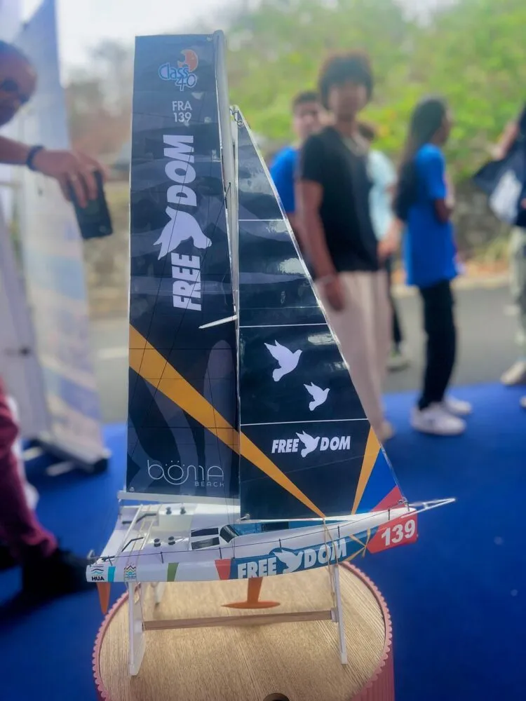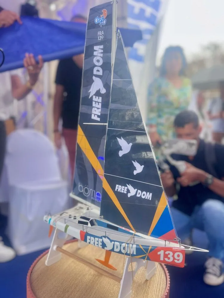 Un grand merci à Wendy & Héloïse : les photos et vidéos sont là, et la maquette du bateau impressionne par sa finesse, un véritable « bébé bateau Free Dom » réalisé avec passion.
