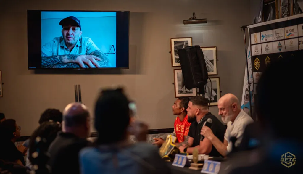 Le lancement du GFTC 4 s’est fait dans une atmosphère chargée : tous les combattants étaient réunis pour une conférence de presse sous forme de meet-up, si ce n’est Henderson, absent physiquement mais présent par visioconférence depuis Johannesburg.