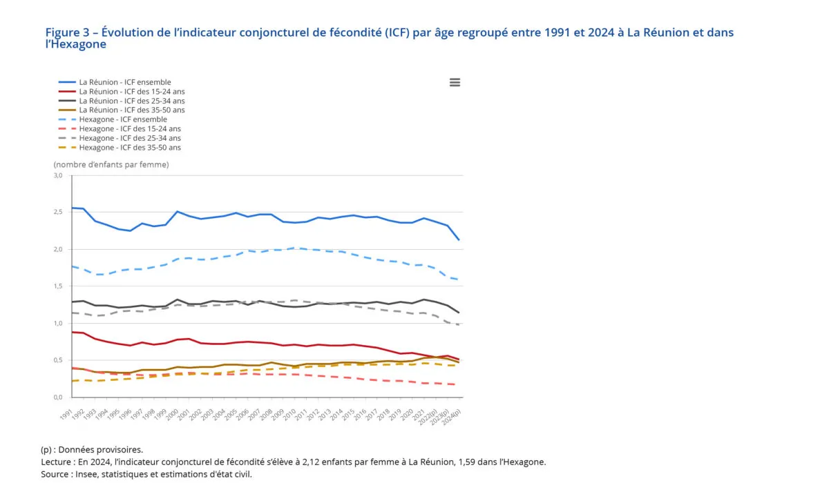 Bilan démographique 2024 à La Réunion : après deux décennies de stabilité, la fécondité recule