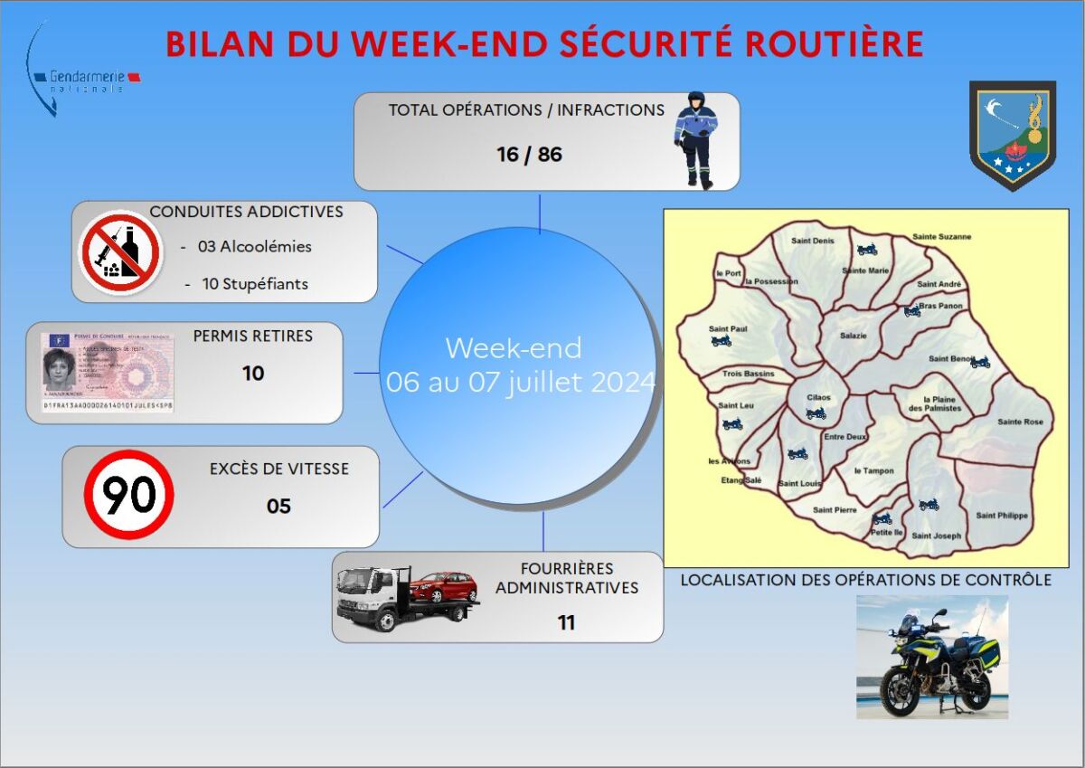 Actualités Bilan du week end « sécurité routière : 10 permis retirés, 86 infractions par La Rédaction 11 août 2024 1 min de lecture Comme à chaque fin de week-end, les services de gendarmerie ont communiqué leur bilan des contrôles routiers opérés. Voici le condensé des opérations : Ne manquez pas toute l’actualité de La Réunion ! Abonnez-vous à la newsletter de Free Dom ! Valider Partager Facebook Twitter Pinterest Linkedin Whatsapp Reddit Email Vous pourriez être intéressé par 2 janvier 2026 1 janvier 2026 Jeudi 1ᵉʳ janvier 2026 – Météo, éphéméride et horoscope du jour 31 décembre 2025 Mercredi 31 décembre 2025 – Météo, éphéméride et horoscope du jour La Rédaction Laisser un commentaire Annuler la réponseYour email address will not be published. Enregistrer mon nom, mon e-mail et mon site dans le navigateur pour mon prochain commentaire. Current ye@r * Leave this field empty Article précédent La Cise va couper l’eau toute la nuit à Salazie dès 21H Article suivant Contrôles routiers : la police a relevé 381 infractions ce week-end Articles récents... Jeudi 1ᵉʳ janvier 2026 – Météo, éphéméride et horoscope du jour Mercredi 31 décembre 2025 – Météo, éphéméride et horoscope du jour Hommage à Johnny Hallyday sur Free Dom 2 ce 5 décembre Mardi 30 décembre 2025 – Météo, éphéméride et horoscope du jour Saint-Joseph : découverte de 2337 plants de cannabis, arrestation de 2 individus Point sur le réseau routier départemental, 29 décembre à 16H30 Suicide sur le pont de la Rivière d’Abord : importante mobilisation des secours et des forces de l’ordre Radier submergé à Ilet Furcy : la route de Cilaos fermée à la circulation cette nuit Fortes pluies : appel à la plus grande prudence à Saint-Paul