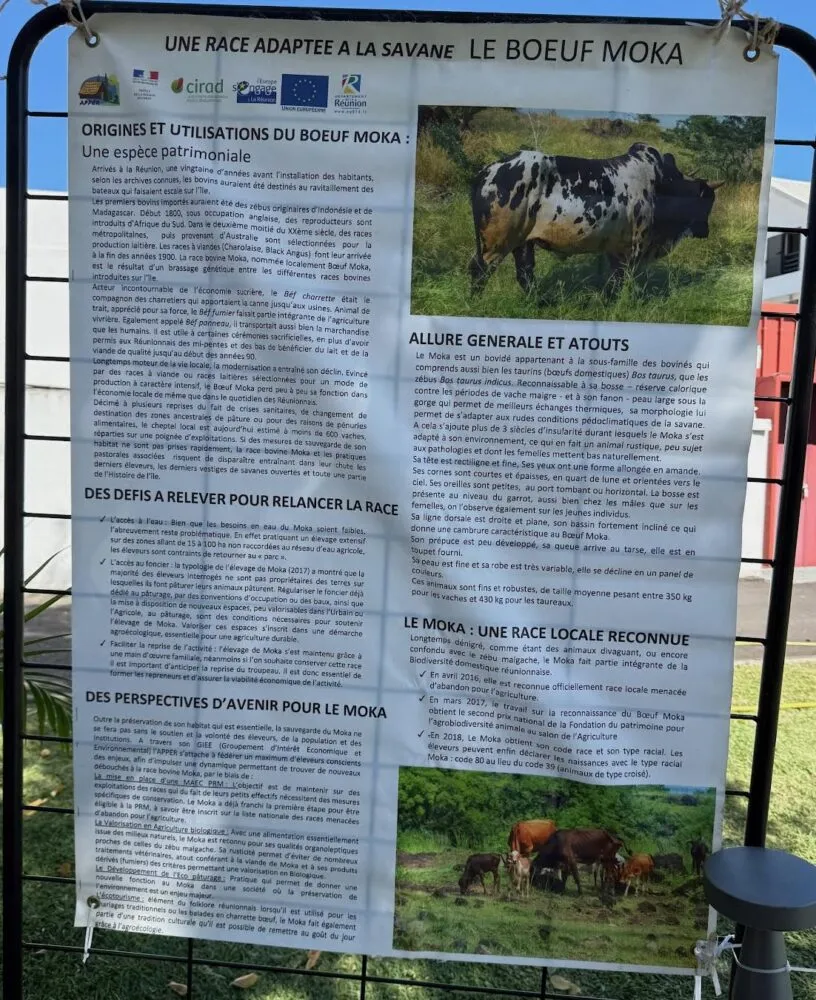 Depuis 2020, ils demandaient une aide au profit des éleveurs de bœufs Moka afin d’éviter la disparition de ces animaux car le bœuf Moka est considéré comme un patrimoine agricole et culturel majeur de notre île. Autrefois essentiel à l’économie rurale et au travail des terres, il est aujourd’hui menacé. Reconnu officiellement comme race bovine menacée de disparition en avril 2015, le bœuf Moka est au cœur d’une stratégie de sauvegarde visant à préserver sa diversité génétique, ses qualités d’adaptation (résistance aux maladies tropicales, au stress thermique) et ses atouts économiques, gustatifs et culturels. Il en reste environ 300 à la Réunion, notamment dans les hauts de l’Ouest.