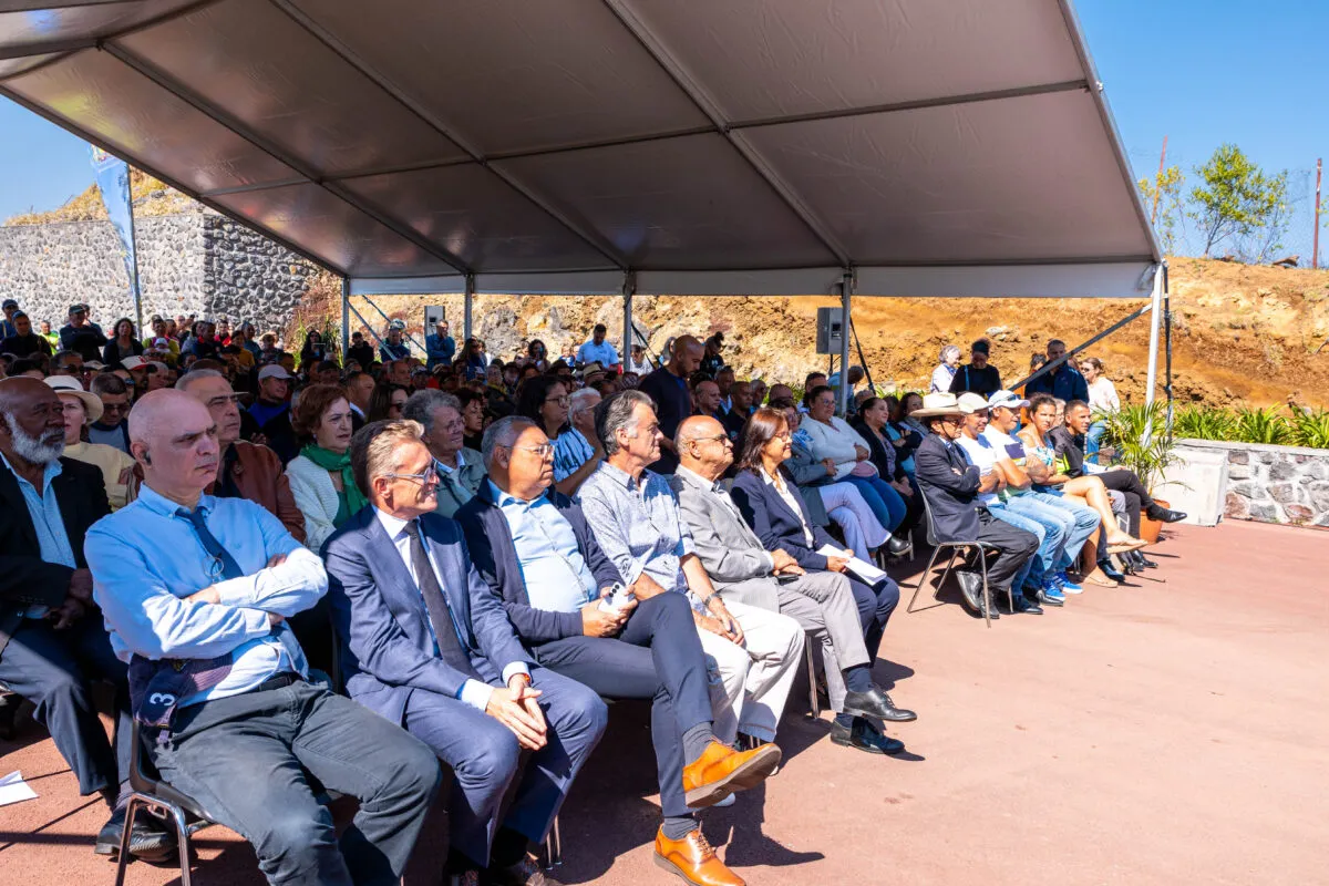 L’inauguration fut également l’occasion de dévoiler la nouvelle version de l’horloge hydraulique, une œuvre emblématique du site. Composée de six clepsydres pour les minutes et d’une grande clepsydre pour les heures, elle illustre à la fois le combat historique du Tampon pour l’accès à l’eau et la capacité de la commune à mêler patrimoine, technologie et symbolisme.
