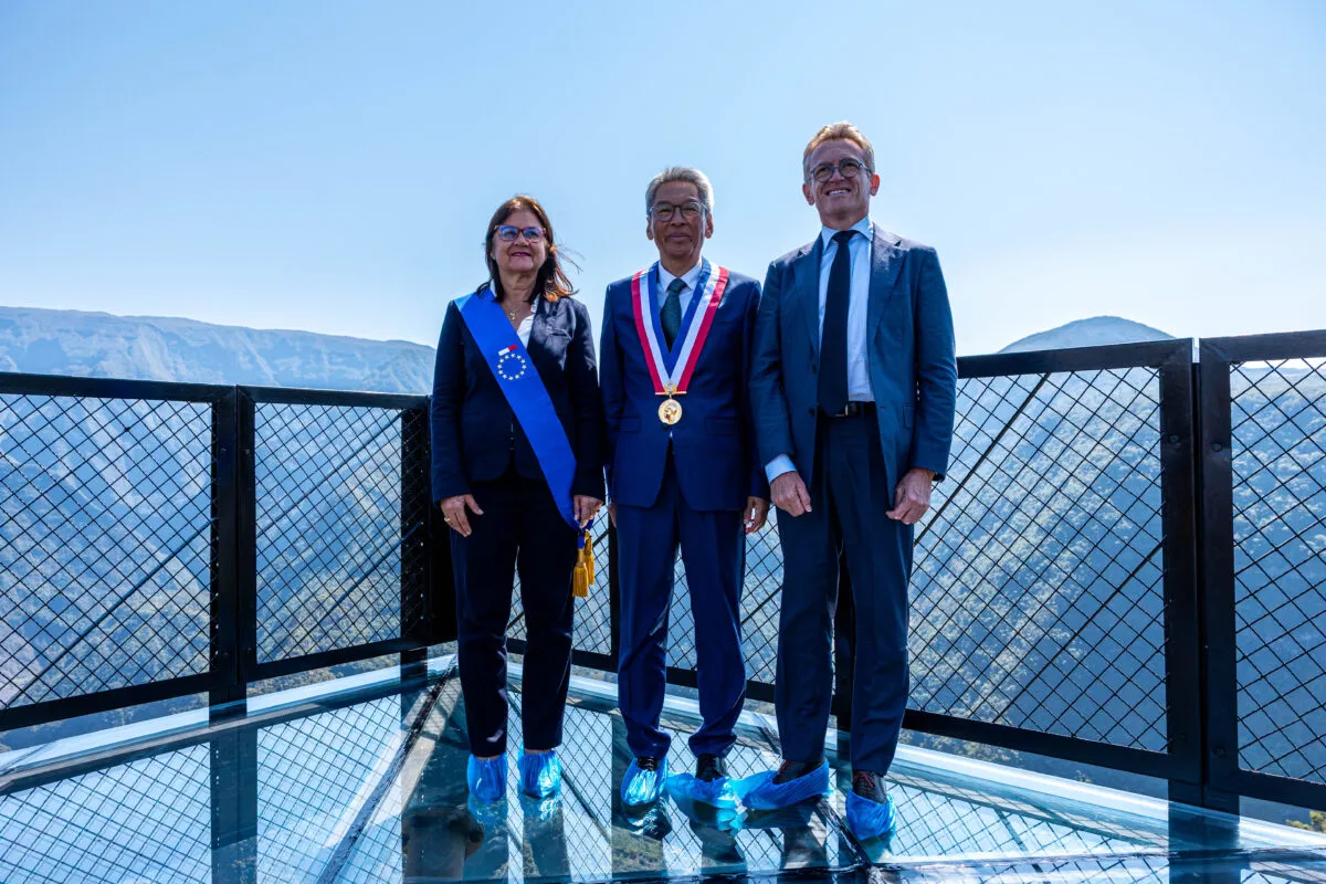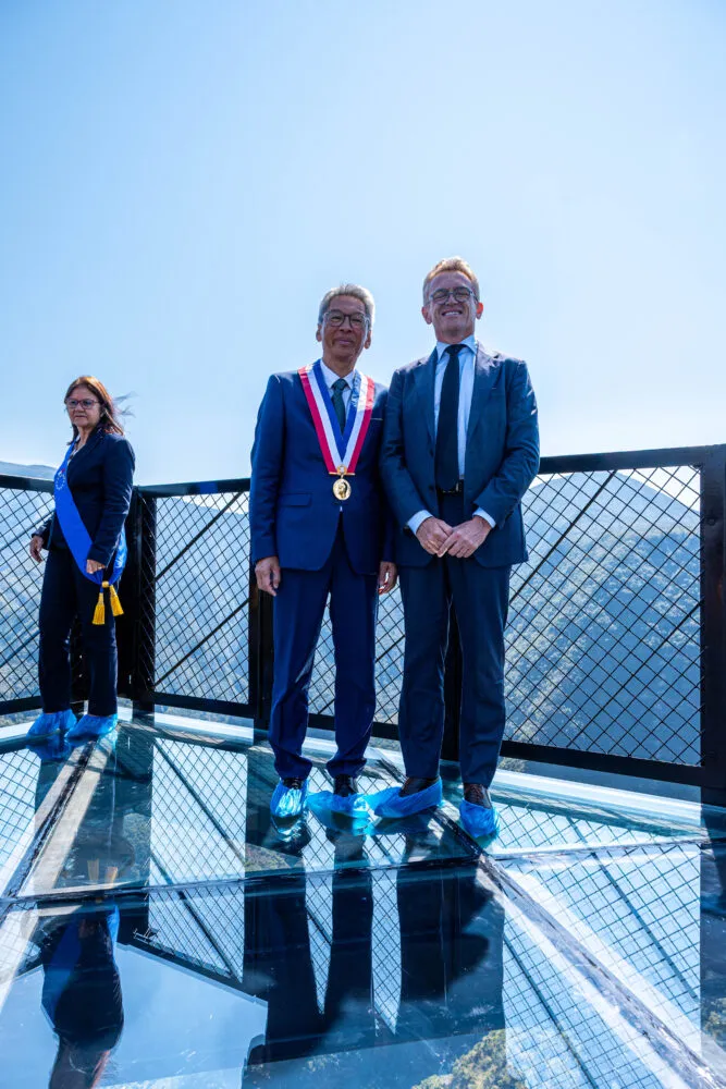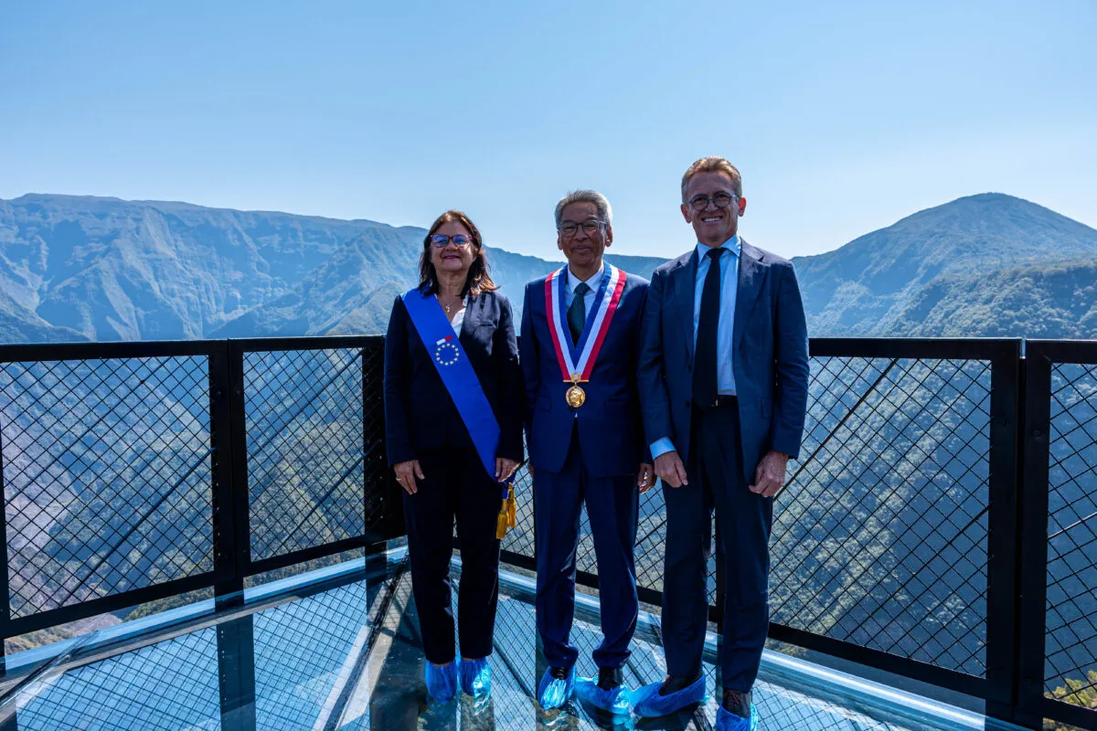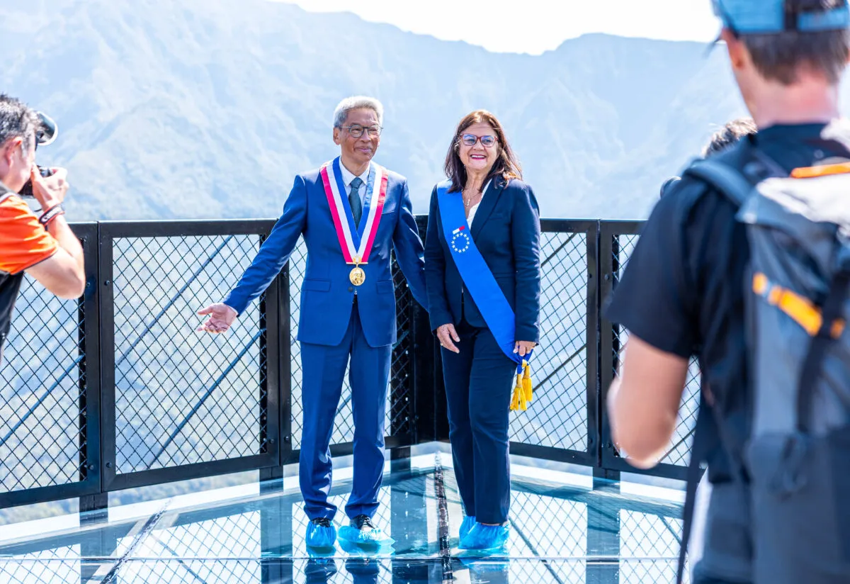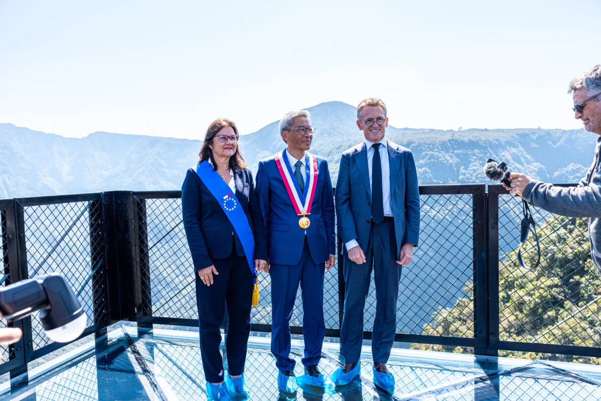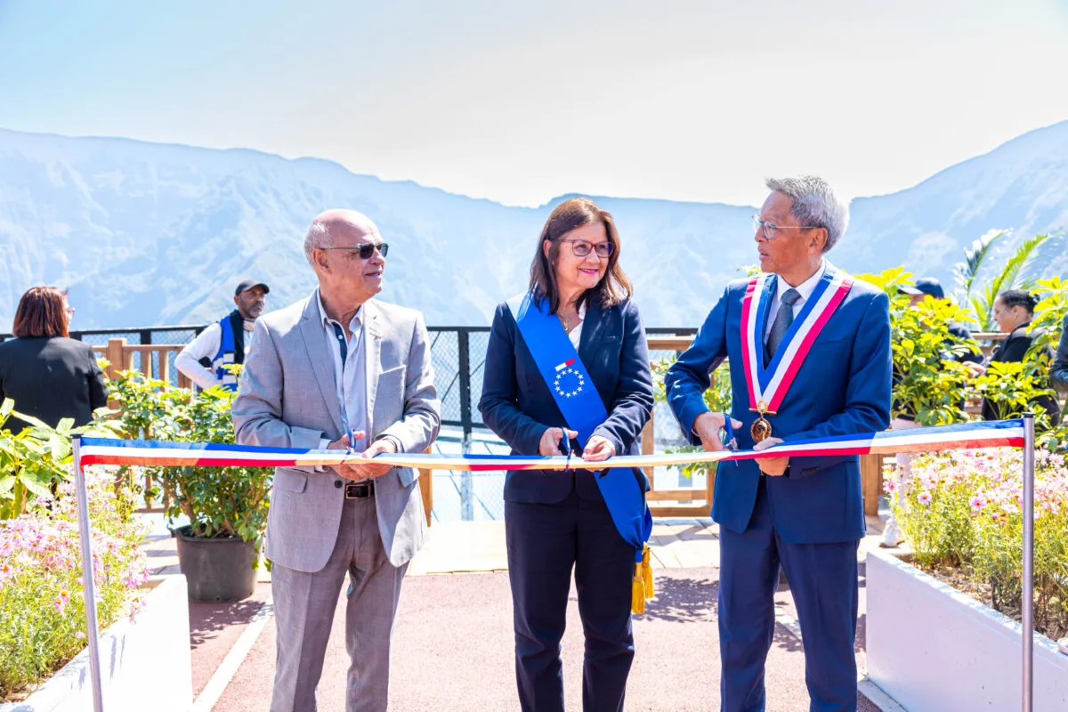 En présence du Maire du Tampon, M. Patrice Thien-Ah-Koon, de ses adjoints, de la députée européenne Marie-Luce Brasier-Clain, du conseiller régional Wilfrid Bertil, ainsi que des entreprises et partenaires ayant contribué au chantier, la plateforme vitrée a été officiellement ouverte au public.