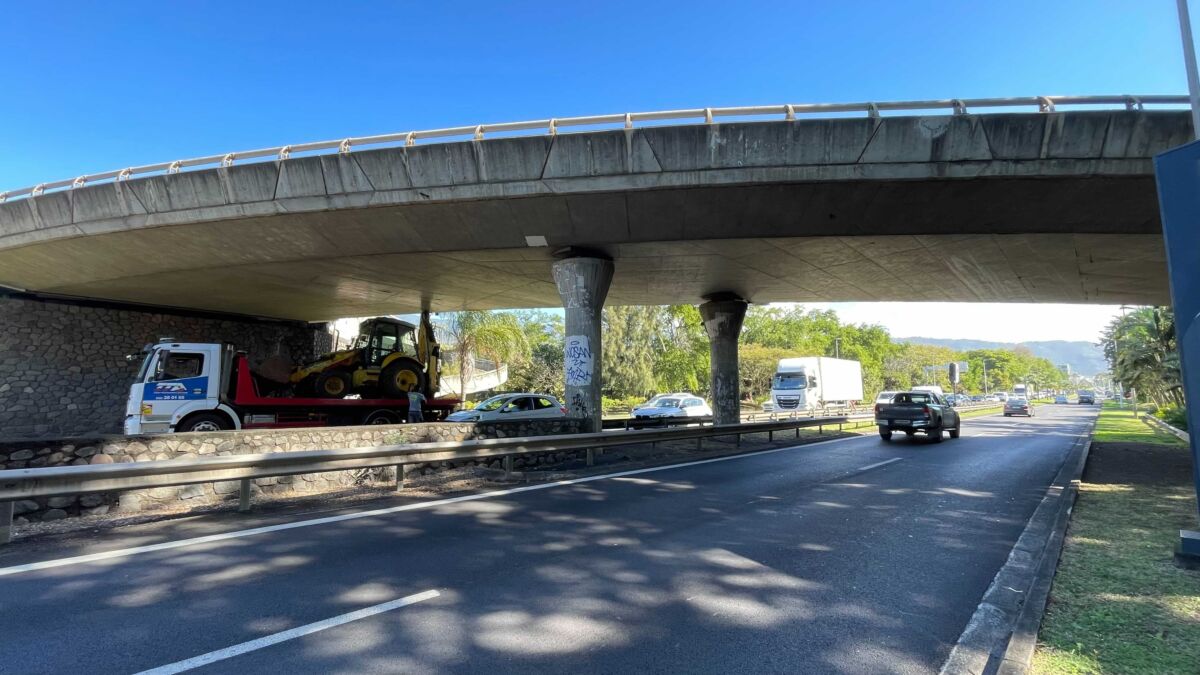 Une tractopelle, sur un camion-plateau, a été coincée sous le pont de l’ancien zoo, vers la fin du  Boulevard Léopold Rambaud. Cela s’est passé un peu avant 14h. Après quelques dizaines de minutes d’intervention, la tractopelle a pu être dégagé. Il a fallu en effet dégonfler les roues de l’engin.