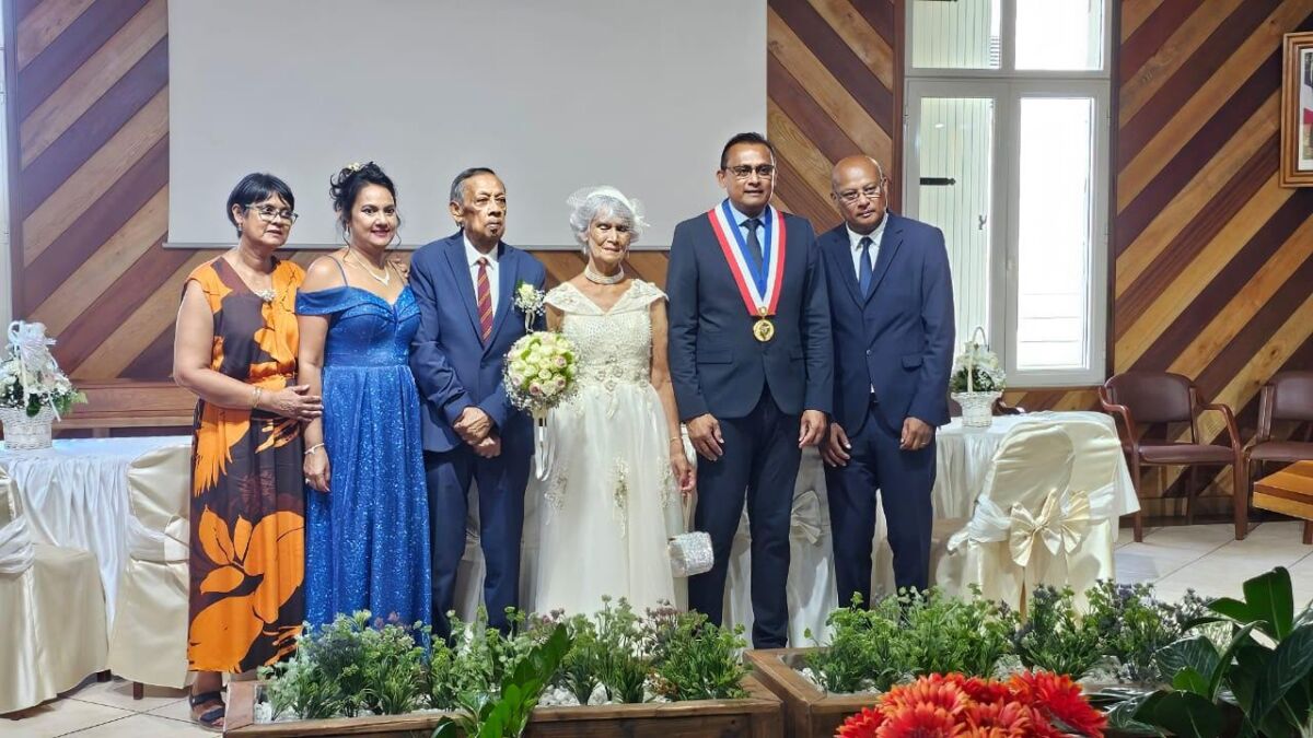 En ce dimanche 4 février, les époux Jean et Jacqueline Atchapa ont renouvelé leurs vœux de mariage à la mairie dans le cadre d’une cérémonie empreinte d’émotion. 60 ans plus tard, les époux Atchapa se sont donc redits « oui » devant Monsieur le maire. Et pas n’importe quel maire puisqu’il s’agit de leur fils Jeannick, devenu premier magistrat de la commune de Bras-Panon depuis juin 2020. Le « petit » Jeannick (grand par la taille) qui, comme le rappelle sa maman, suivait son père Jean partout. « Il a baigné dans la politique; Lorsque son papa, très engagé politiquement, effectuait ses tournées pour aller à la rencontre des administrés, Jeannick était toujours à ses côtés ».