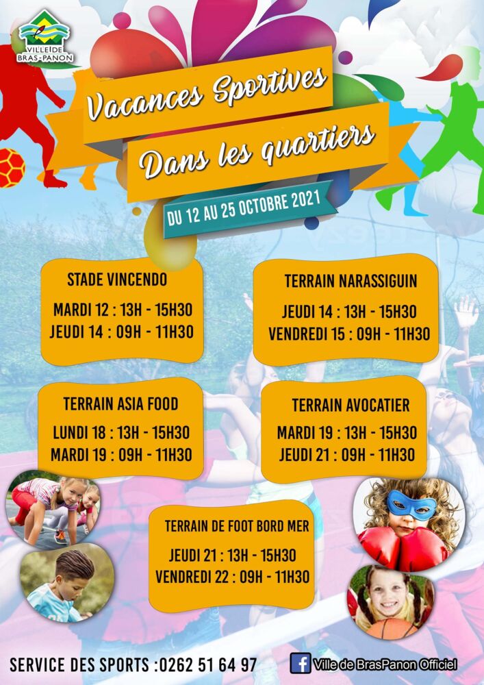 Bras-Panon/Collectivités Bras-Panon : des activités dans les quartiers jusqu’au 25 octobre par La Rédaction 13 octobre 2021 1 min de lecture Le service des sports organise des activités dans les quartiers du 12 au 25 octobre. Venez en tenue de sport partagez un moment convivial sportif. Retrouvez ci-dessous les horaires. Plus d’informations au 0262 516 497 Ne manquez pas toute l’actualité de La Réunion ! Abonnez-vous à la newsletter de Free Dom ! Valider Partager Facebook Twitter Pinterest Linkedin Whatsapp Reddit Email Vous pourriez être intéressé par 22 juillet 2025 Noces de diamant : Monique et Jean, soixante ans d’une histoire d’amour née entre l’Algérie et la Manche 18 juin 2025 Bras-Panon : un engagement fort pour « mieux manger » 5 mai 2025 « Bras Panon en fête », une vraie bouffée d’oxygène pour les forains ! La Rédaction Laisser un commentaire Annuler la réponseYour email address will not be published. Enregistrer mon nom, mon e-mail et mon site dans le navigateur pour mon prochain commentaire. Current ye@r * Leave this field empty Article précédent Athlétisme Ultra Proximité 974 : des ateliers organisés à St-Paul jusqu’au 22 octobre (VIDEO) Article suivant Les Journées Nationales de l’Architecture à St-Paul du 15 au 17 octobre 2021 Articles récents... Mercredi 31 décembre 2025 – Météo, éphéméride et horoscope du jour Hommage à Johnny Hallyday sur Free Dom 2 ce 5 décembre Mardi 30 décembre 2025 – Météo, éphéméride et horoscope du jour Saint-Joseph : découverte de 2337 plants de cannabis, arrestation de 2 individus Point sur le réseau routier départemental, 29 décembre à 16H30 Suicide sur le pont de la Rivière d’Abord : importante mobilisation des secours et des forces de l’ordre Radier submergé à Ilet Furcy : la route de Cilaos fermée à la circulation cette nuit Fortes pluies : appel à la plus grande prudence à Saint-Paul Saint-Gilles-les-Bains : une route impraticable, les riverains montent au créneau (VIDEOS) Très grands excès de vitesse : un délit passible de prison depuis le 29 décembre 2025