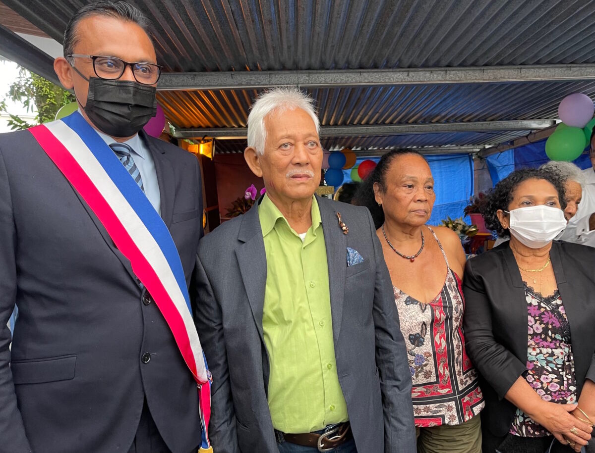 Le maire Jeannick Atchapa et son adjointe à l’Etat-Civil, Marie-Andrée Damour, ont remis des cadeaux aux époux Bremanato dont leur acte de mariage daté du 27 août 1971.