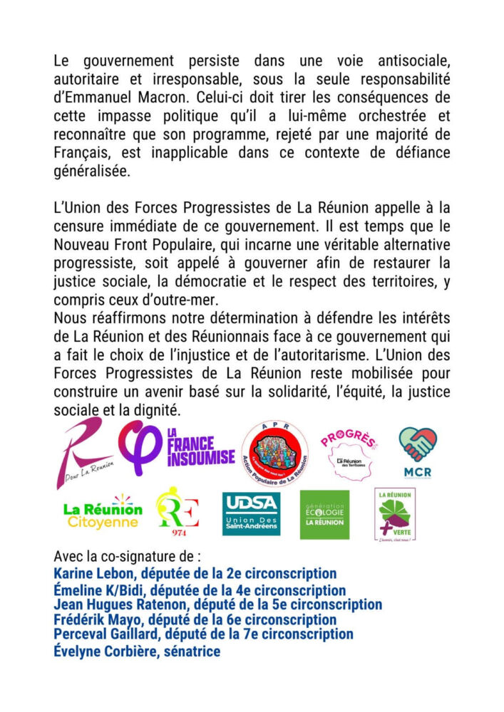 Nous avons promis une motion de censure à chaque 49.3 du gouvernement. Nous y sommes et je voterai cette motion. Cette situation de blocage doit cesser. Les jours de Michel Barnier sont comptés et Macron doit nommer un ministre du Nouveau Front Populaire ou partir ».