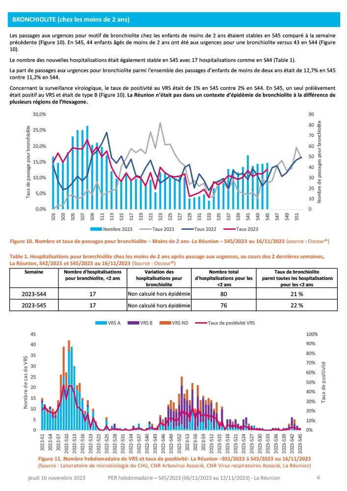 Voici le point épidémiologique régional de la semaine 45 (6 au 12 novembre 2023).