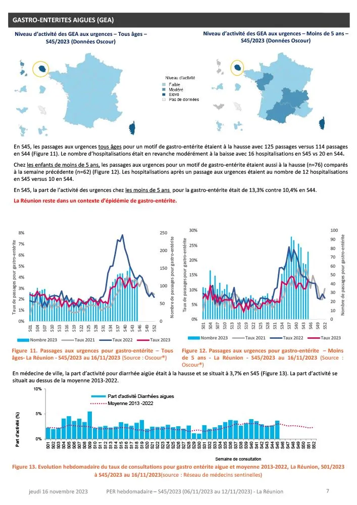 - Gastro-entérite : La réunion est en épidémie de gastro-entérite. Les indicateurs étaient à la hausse, aux urgences comme en médecine de ville.
