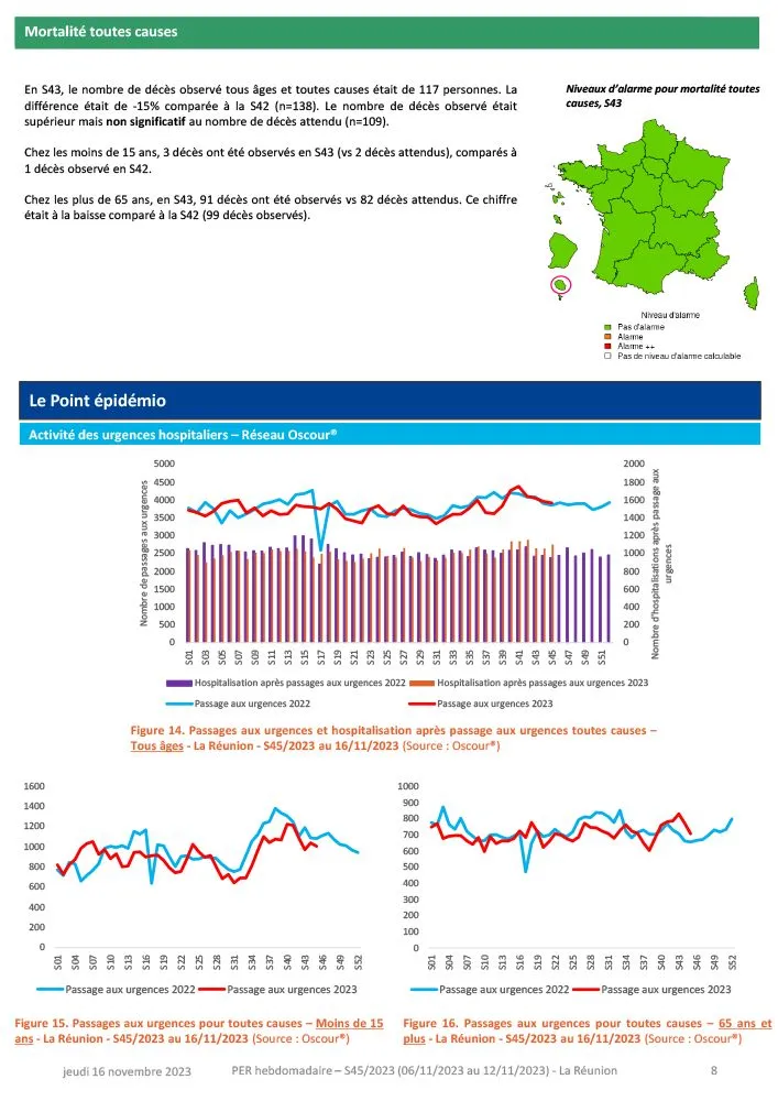 - Grippe : La Réunion est en post-épidémie de grippe. Baisse des indicateurs sanitaires et virologiques.