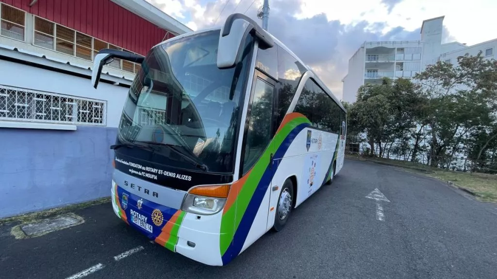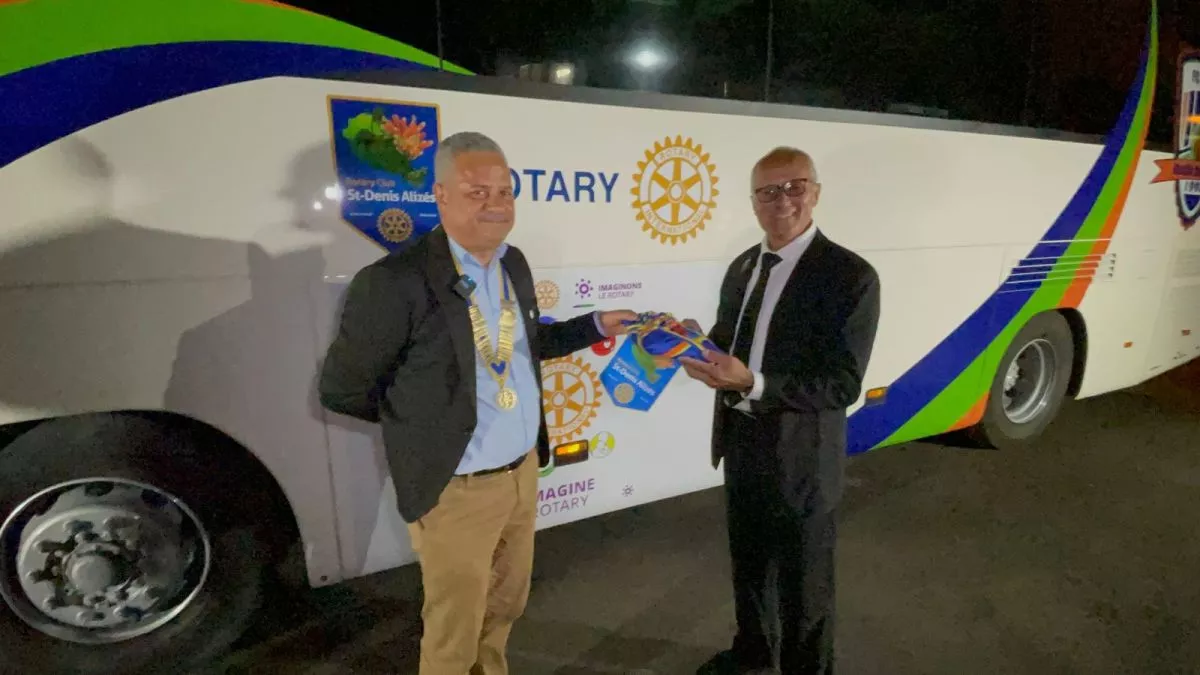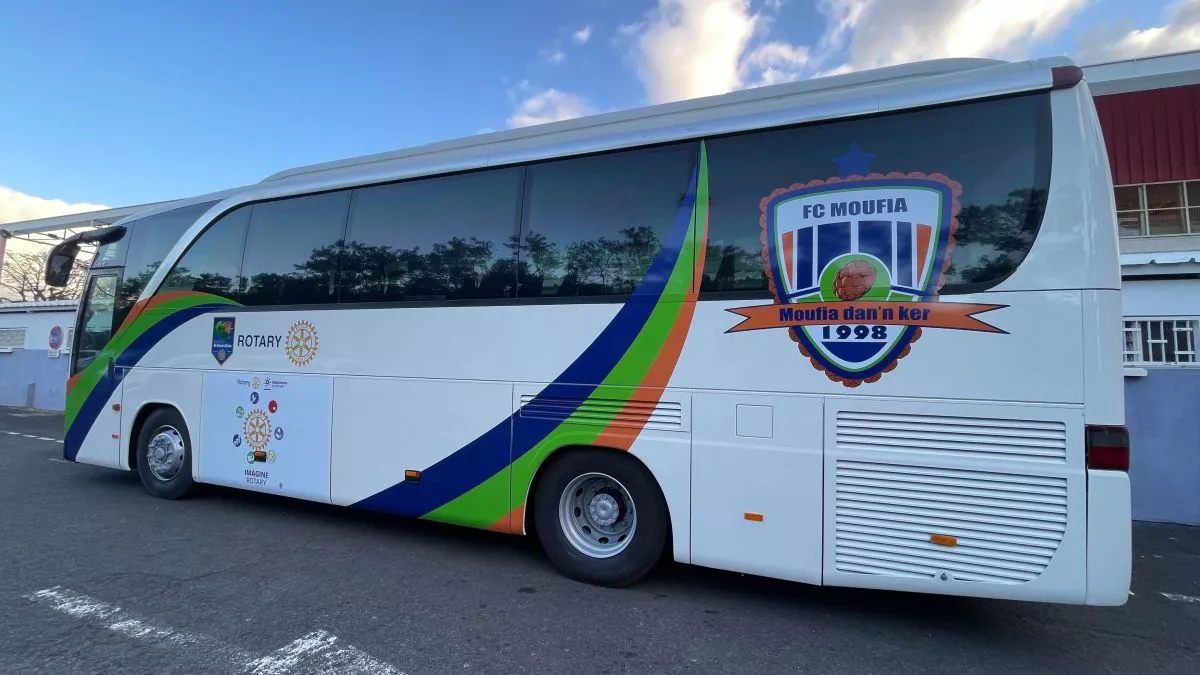 le mardi 23 août dernier, à Sainte-Clotilde, Jacky LATCHOUMAYA, le président du Rotary club Saint-Denis Alizés réceptionnait un bus de 45 places et en remettait les clés à Patrick GRONDIN le président de l’association de Football club de Moufia.