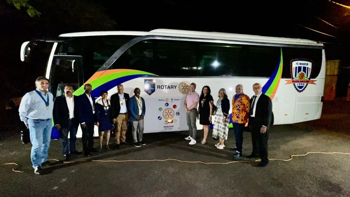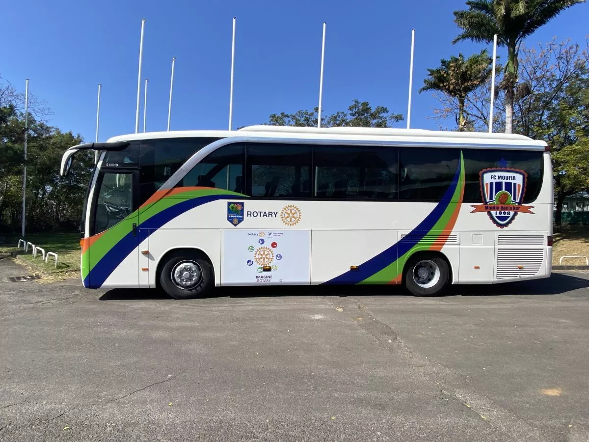 Au fur et à mesure des rencontres associatifs, la fondation FONDATOM décide de faire un don d’un bus au Rotary club en faveur de l’association Football Club Moufia. La devise du Rotary est « Servir au-delà de soi-même (Serve above self), grâce à ce don les rotariens ont réalisé avec cœur le souhait de ces jeunes et de ces accompagnateurs.