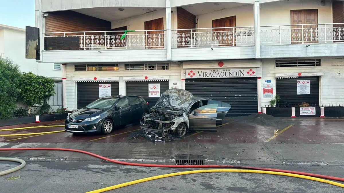Saint-Denis : un véhicule entièrement calciné devant la charcuterie Viracaoudin (Photos-vidéo)