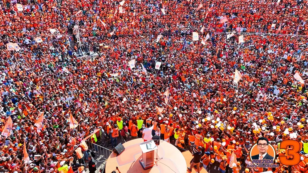 Plus de 50 000 personnes, toutes vêtues d’organes, ont investi le Colisée d’Antsonjombe à Antananarivo, la capitale malgache, dimanche dernier, lors de la dernière journée de campagne du président sortant malgache, Andry Rajoelina.