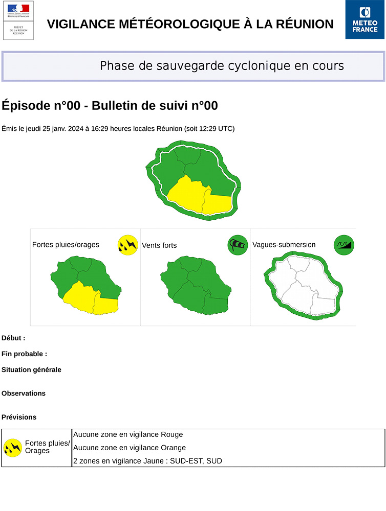 Bulletin émis le jeudi 25 janv. 2024 à 16:29 heures locales Réunion.