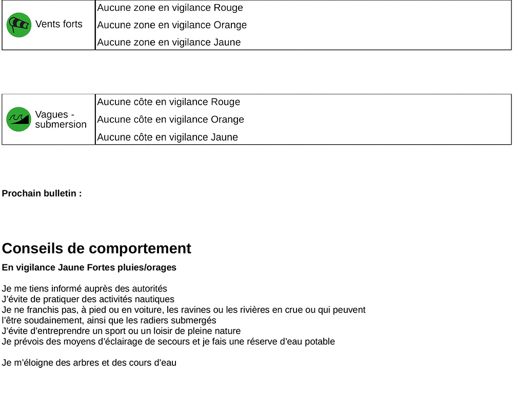 - – Vigilance JAUNE Vent Fort en cours pour les zones Ouest et Sud-Est.