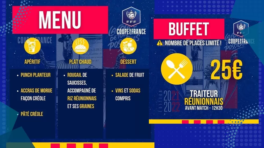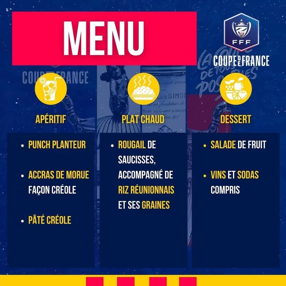 Pour cet événement, le club a fait appel à un traiteur « réunionnais », on vous lire regarder le menu :