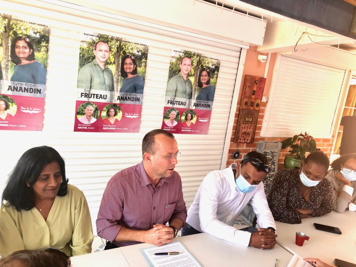 Le binôme de la majorité municipale composé de Primilla Cevamy et de Laurent Papaya, qui a totalisé 14% des suffrages dimanche dernier dans ce canton de Saint-André, a assisté hier après-midi (mercredi 23 juin 2021), à la conférence de presse tenue par le binôme Eric Fruteau et Lyne-Rose Anandin. Lequel binôme va se retrouver ce dimanche face à celui composé de Jean-Marie Virapoullé et de Viviane Payet Ben Hamida, les deux conseillers départementaux sortants de ce canton.