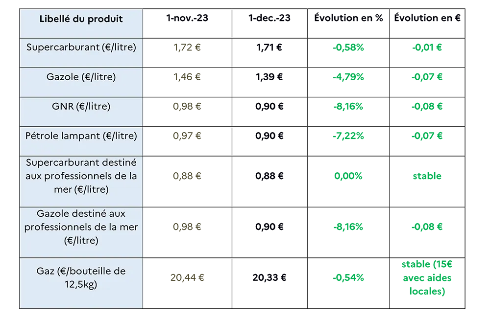 En décembre 2023, les prix maxima applicables à La Réunion seront les suivants :