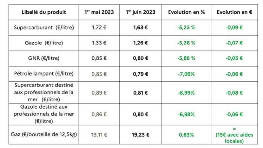 En juin 2023, les prix maximums applicables à la Réunion seront les suivants :