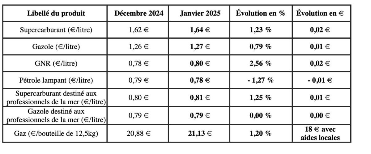 Ainsi, au 1er janvier 2025, les prix maximum applicables à La Réunion sont les suivants :