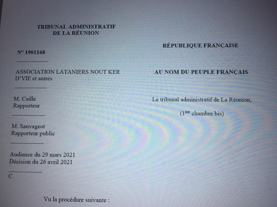 Suite à l’audience du 29 mars dernier, le Tribunal Administratif vient d’annuler partiellement la révision du PLU de la Possession concernant les Lataniers.