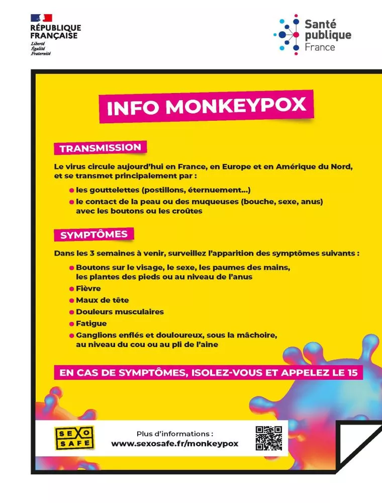 Compte tenu de ce qui a été observé en Europe sur la maladie, une communication ciblée a été rapidement mise en œuvre en direction des personnes HSH. Les messages rappellent les modes de transmission, les symptômes, la conduite à tenir en cas de symptômes. Ils sont actuellement diffusés en digital sur le site Sexosafe dédié aux HSH et via les réseaux sociaux. En parallèle, sur le terrain, des affiches, des flyers et des fiches-conseils ont été diffusés grâce aux acteurs associatifs, aux ARS et aux équipes de Sexofe présentes sur le terrain. Les actions de prévention s’adapteront à l’évolution de la situation.