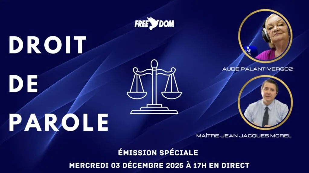 Le mercredi 3 décembre 2025 à 17 heures, l’émission « Droit de Parole », animée par Aude Palant-Vergoz sur Radio Free Dom, accueillera Maître Jean-Jacques Morel pour une nouvelle émission spéciale consacrée au droit et à la justice. Au programme