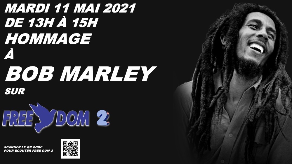 Ce mardi 11 mai 2021, nous rendrons hommage au chanteur Bob Marley sur notre station musicale Free Dom 2.