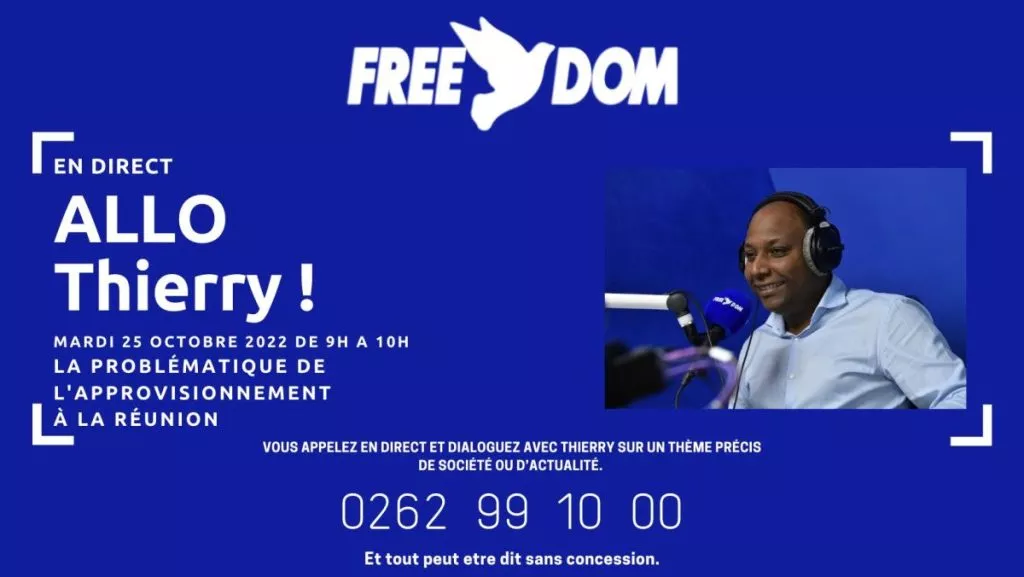Le problème d’approvisionnement à La Réunion. C’est le thème de l’émission hebdomadaire de Thierry Robert sur les ondes de Free Dom ce mardi 25 octobre. Pour réagir à cette émission « Allô Thierry », composez le 02629910 00 à partir de 9h.