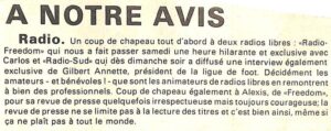 Très bel article de Josiane Corvi du JIR : Carlos pour la première fois à Radio Free Dom, il reviendra pour la télé avec Josiane Balasko pour dialogue mémorable avec Coluche !