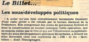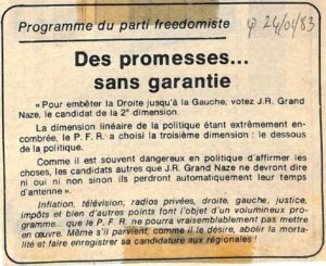 C’est J.R. Grand Naze qui est la tête de liste ! Le petit garçon que vous voyez sur la photo avec un chapeau « partout c’est la merde » n’est autre que le fils de Fred Dargaud (GAGS Animation). À