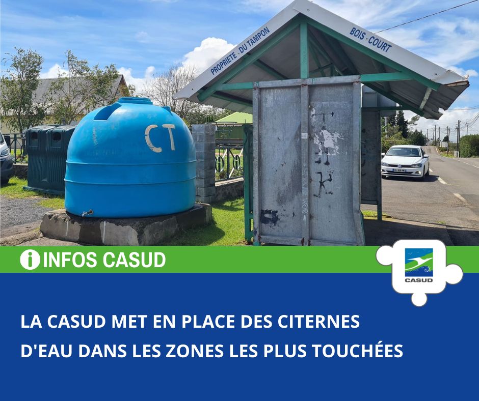A la demande d’ANDRE THIEN AH KOON, dès la levée de l’alerte rouge (et après la phase de sauvegarde), la CASUD en lien avec la commune du Tampon et Sudéau mettra en place le dispositif PLAN CITERNE EAU.