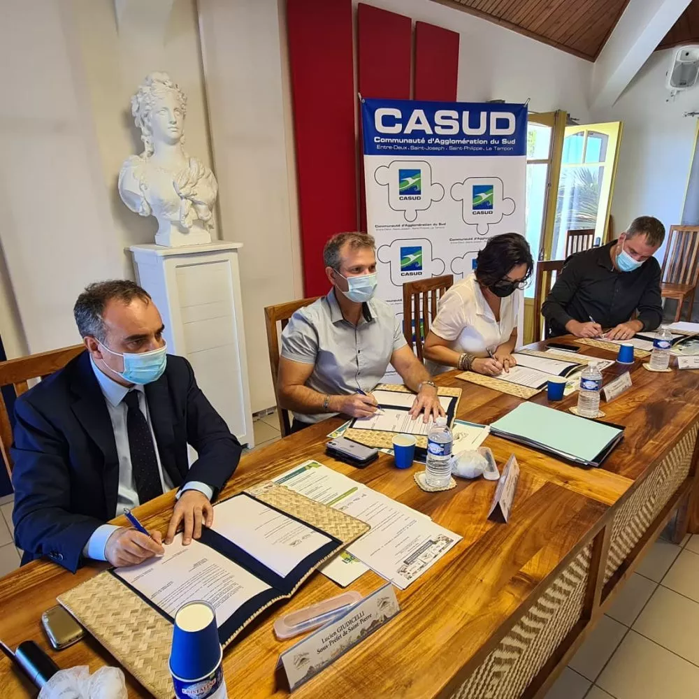Ce jeudi 27 janvier 2022, le maire de Saint-Philippe, Olivier Rivière, le Président de la CASUD, André Thien Ah Koon, représentée par Mme Vanessa Courtois (5ème vice-présidente de l’intercommunalité ), M.