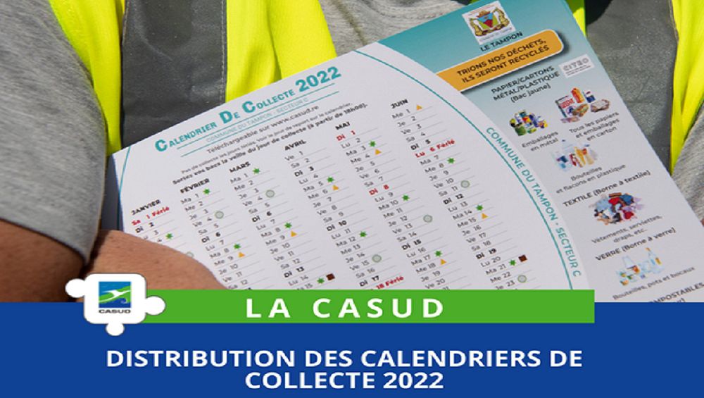 La CASUD vous informe que les calendriers de collecte pour l’année 2022 sont en cours de distribution sur les communes du Tampon et de l’Entre-Deux.