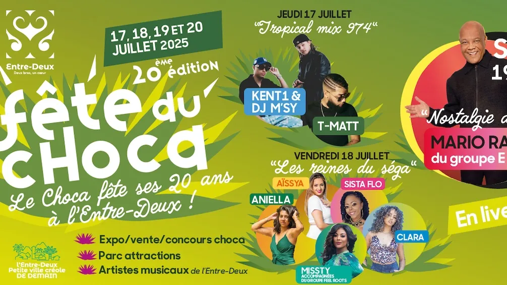 Depuis jeudi et jusqu’à ce dimanche 20 juillet 2025, le village de L’Entre-Deux a vibré au rythme de la 20e édition de la Fête du Choca, événement incontournable du calendrier culturel réunionnais.