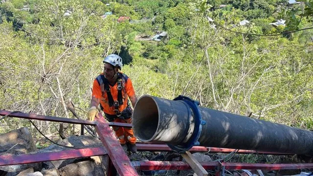 A la demande de la CASUD, et malgré les conditions difficiles d’accès, la SUDEAU est intervenue rapidement afin de réparer la canalisation Edgar Avril cassée par un important éboulis sur la falaise de Grand Bassin survenu le mardi 25 mars