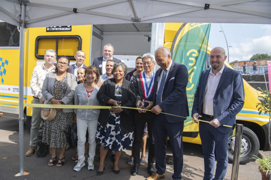 Ce mercredi 18 septembre 2024, au Tampon et à l’occasion de la Journée Pour l’Emploi, Francemay Payet-Turpin représentante de Jacquet Hoarau, Président de la CASUD, Patrice Thien Ah Koon, Maire du Tampon accompagnés des représentants de Initiative Réunion, France Travail,