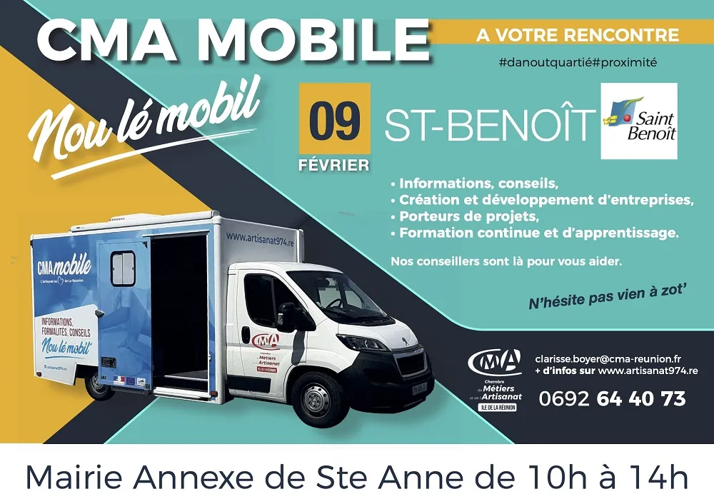 La CMA Mobile sera présente à la mairie annexe de Sainte-Anne, le jeudi 09 février de 10h à 14h.