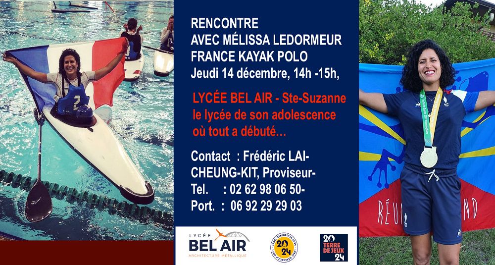 La Réunionnaise Mélissa Ledormeur, internationale de l’équipe de France de kayak polo, retrouvera demain avec plaisir sa ville et son ancien lycée de Bel Air pour renouer le lien avec ses (anciens) professeurs, avant d’évoquer son parcours exemplaire (*) et répondre