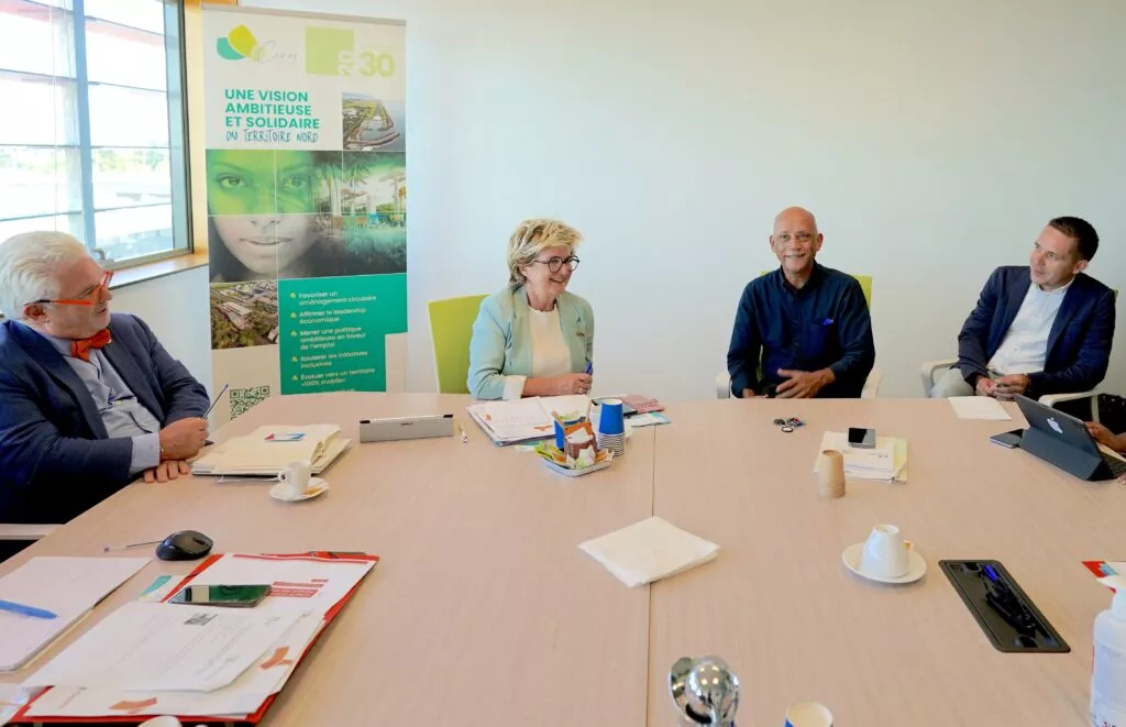 Le 1er vice-président de La CINOR Jacques LOWINSKY a reçu le mardi 23 août 2022 une délégation du CEREMA (Centre d’Études et d’expertise sur les Risques, l’Environnement, la Mobilité et l’Aménagement), présidée par Mme Marie-Claude JARROT, maire de Montceau-les-Mines. Les experts du CEREMA