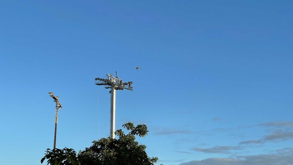 Maurice GIRONCEL, Président de la Cinor, et Ericka BAREIGTS, Maire de Saint-Denis, président, ce samedi 3 juillet,à l’opération de déroulage des câbles du Téléphérique Chaudron/ Moufia/Bois de Nèfles par dispositif drone. Cette opération tant attendue, spectaculaire s’il en est,débute donc
