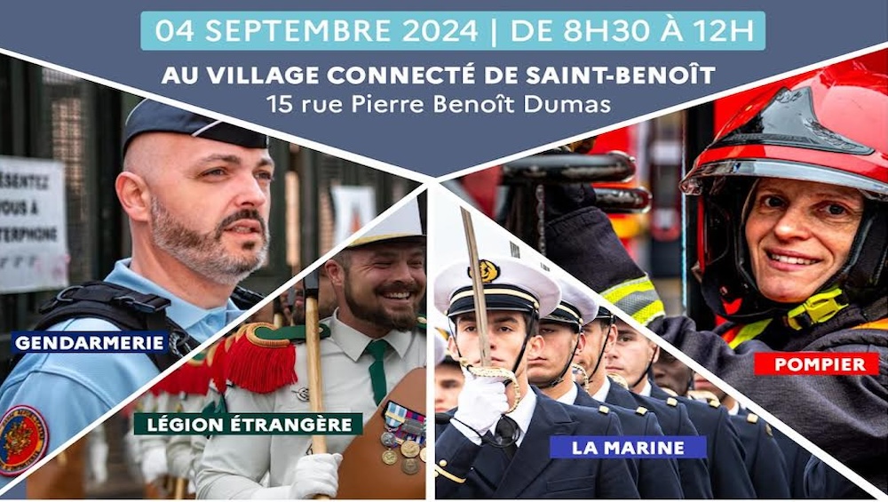La Ville de Saint-Benoît vous invite à la 1ère édition du Forum des métiers de la défense ce mercredi 04 septembre, de 8h30 à 12h au Village connecté.