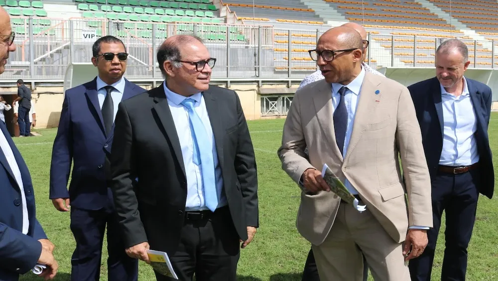 Une rencontre entre passionnés du ballon rond ce mardi 29 avril. David Lorion, maire de Saint-Pierre, Philippe Diallo, président de la Fédération Française de Football (FFF), Rosaire Moriscot, président de la Ligue Réunionnaise de Football (LRF), Sanda Manohisoa, représentant de