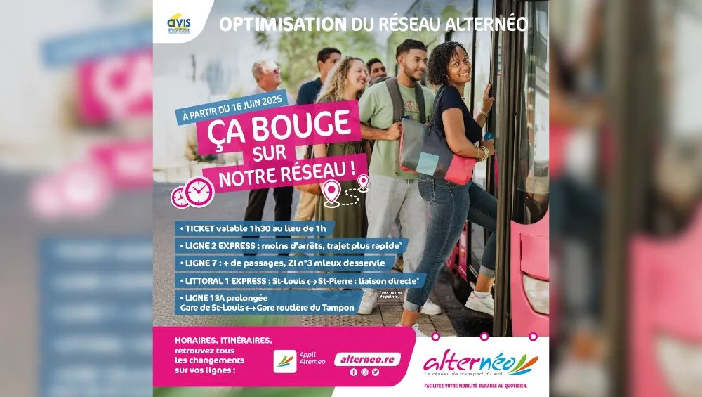 À partir du 16 juin, ça bouge sur le réseau Alternéo ! Des itinéraires repensés, de nouvelles dessertes, des horaires modifiés :Votre ticket est désormais valable 1h30 au lieu de 1h pour plus de flexibilité pour vos correspondances.Ligne 2 EXPRESS :