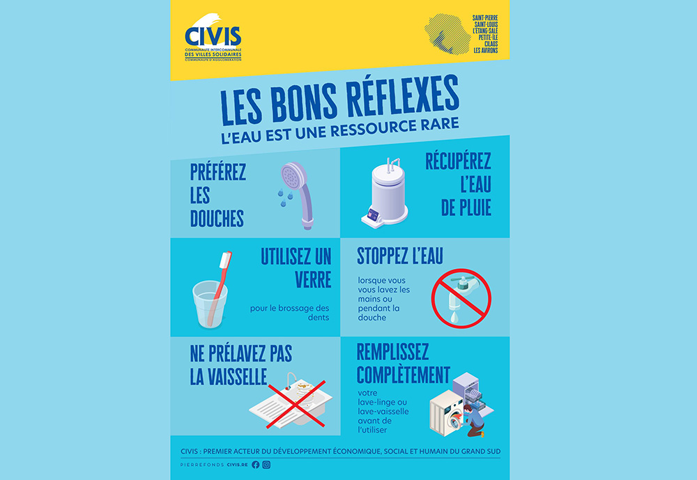 La CIVIS informe les habitants du secteur de Bras Sec de Cilaos, qu’en raison de l’épisode de sécheresse actuel, des coupures d’eau quotidiennes peuvent intervenir afin de faire remonter le réservoir et ce entre 21h00 et 5h00 du matin. Ce