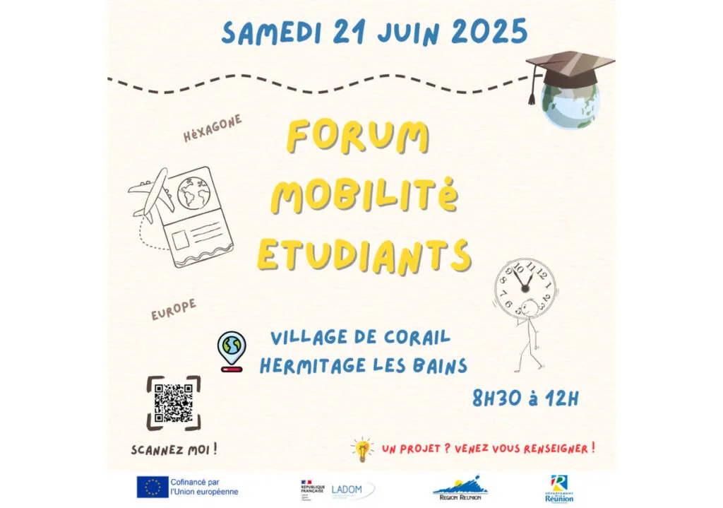 Dans le cadre d’un partenariat avec l’Union européenne, le Département organise, le samedi 21 juin au Village Corail (L’Ermitage-les-Bains), un forum de la mobilité étudiante.