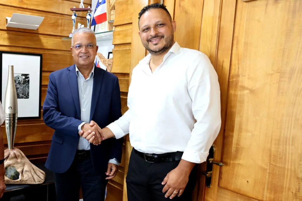 « Le Président du Conseil départemental, Cyrille Melchior, a reçu ce jeudi 22 mai 2025 Johan Guillou, Président du Comité régional olympique et sportif (CROS) de La Réunion.