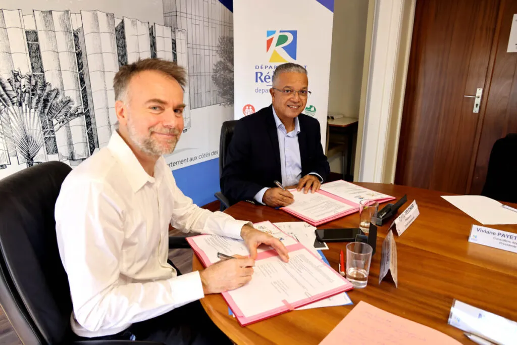 Le vice-Président Gilles Hubert et le Conseiller départemental Aurélien Centon représentaient le Président Cyrille Melchior lors de la signature de la convention de création du Groupement d’intérêt public (GIP) Mafate, organisée le jeudi 5 juin à Aurère. Le GIP, qui